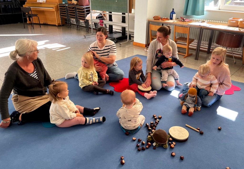 In einer vielseitigen Mischung aus Liedern, Kniereitern, Fingerspielen, Tänzen und dem Ausprobieren verschiedener Instrumente wie Rasseln, Klanghölzer und Glöckchen, werden die Babys in ihrer Erkundungsphase angeregt und gefördert. Gemeinsames Musizieren und Musikhören sind in dieser frühen Phase für das Kind Nahrung für Körper, Seele und Gehirn.